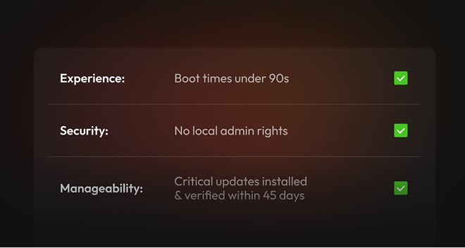 Clear thresholds are required to translate raw telemetry into decision-grade outcomes, and those thresholds must be applied consistently across the fleet. Each decision must also be explainable at the device level, allowing IT to understand why a device was flagged and to defend the outcome to users, finance, or auditors.